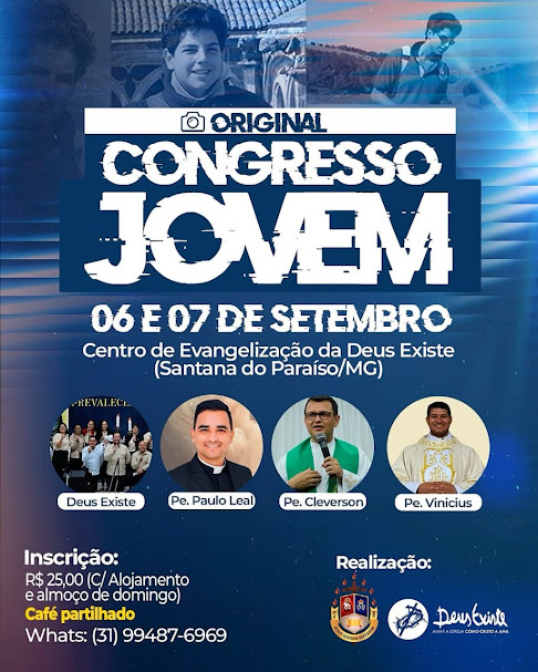 “Este Congresso é uma oportunidade de renovar a fé e mostrar que a juventude do Vale do Aço tem sede de Deus. Estaremos unidos e acompanhando a canonização de Carlo Acutis, que mostrou que a santidade é possível para todos”, destaca Elton Pimentel, fundador da Comunidade Católica Deus Existe.