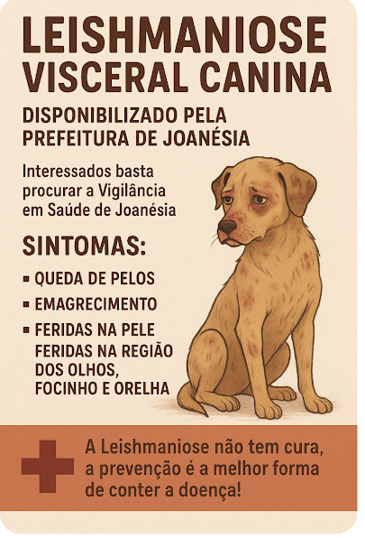 A Prefeitura de Joanésia, por meio da Vigilância em Saúde e da Secretaria Municipal de Saúde, está disponibilizando atendimento gratuito para cães com suspeita de Leishmaniose Visceral Canina (LVC). A iniciativa tem como objetivo combater a disseminação da doença e orientar os tutores sobre os cuidados e formas de prevenção.